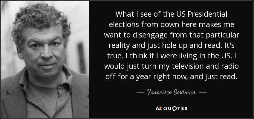 What I see of the US Presidential elections from down here makes me want to disengage from that particular reality and just hole up and read. It's true. I think if I were living in the US, I would just turn my television and radio off for a year right now, and just read.