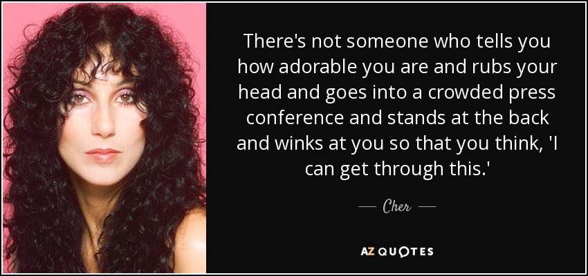 There's not someone who tells you how adorable you are and rubs your head and goes into a crowded press conference and stands at the back and winks at you so that you think, 'I can get through this.'