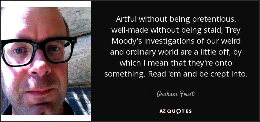 Artful without being pretentious, well-made without being staid, Trey Moody's investigations of our weird and ordinary world are a little off, by which I mean that they're onto something. Read 'em and be crept into.