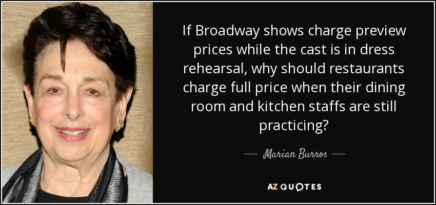 If Broadway shows charge preview prices while the cast is in dress rehearsal, why should restaurants charge full price when their dining room and kitchen staffs are still practicing?