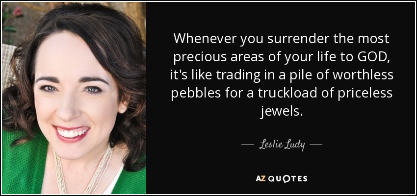 Whenever you surrender the most precious areas of your life to GOD, it's like trading in a pile of worthless pebbles for a truckload of priceless jewels.