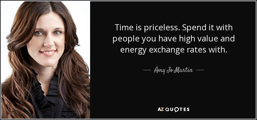 Time is priceless. Spend it with people you have high value and energy exchange rates with.
