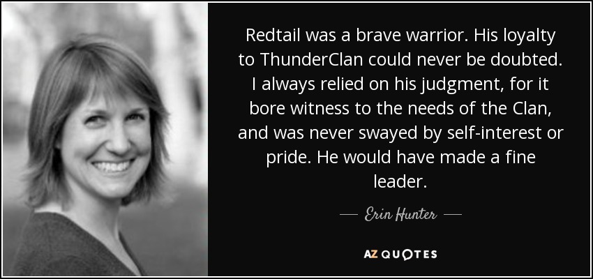 Redtail was a brave warrior. His loyalty to ThunderClan could never be doubted. I always relied on his judgment, for it bore witness to the needs of the Clan, and was never swayed by self-interest or pride. He would have made a fine leader.
