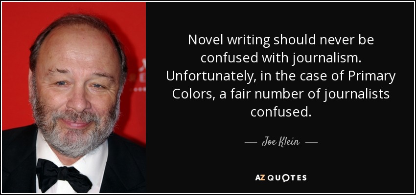 Novel writing should never be confused with journalism. Unfortunately, in the case of Primary Colors, a fair number of journalists confused.