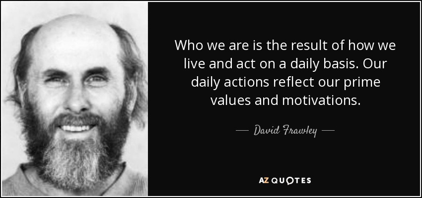 Who we are is the result of how we live and act on a daily basis. Our daily actions reflect our prime values and motivations.