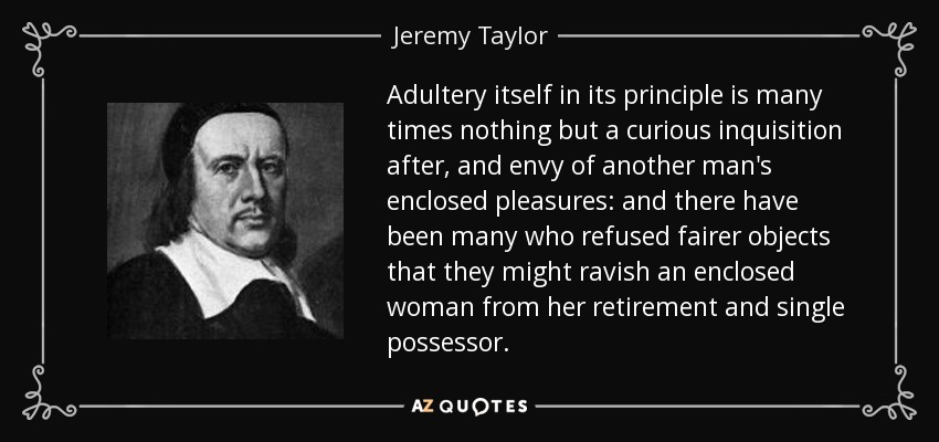 Adultery itself in its principle is many times nothing but a curious inquisition after, and envy of another man's enclosed pleasures: and there have been many who refused fairer objects that they might ravish an enclosed woman from her retirement and single possessor.