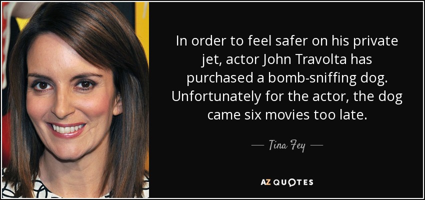 In order to feel safer on his private jet, actor John Travolta has purchased a bomb-sniffing dog. Unfortunately for the actor, the dog came six movies too late.
