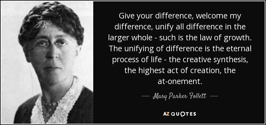 Give your difference, welcome my difference, unify all difference in the larger whole - such is the law of growth. The unifying of difference is the eternal process of life - the creative synthesis, the highest act of creation, the at-onement.