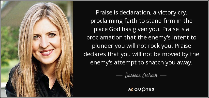 Praise is declaration, a victory cry, proclaiming faith to stand firm in the place God has given you. Praise is a proclamation that the enemy's intent to plunder you will not rock you. Praise declares that you will not be moved by the enemy's attempt to snatch you away.