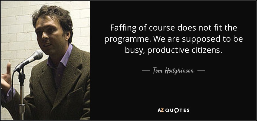 Faffing of course does not fit the programme. We are supposed to be busy, productive citizens.