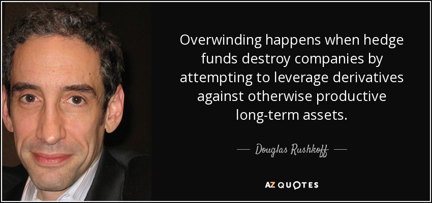 Overwinding happens when hedge funds destroy companies by attempting to leverage derivatives against otherwise productive long-term assets.