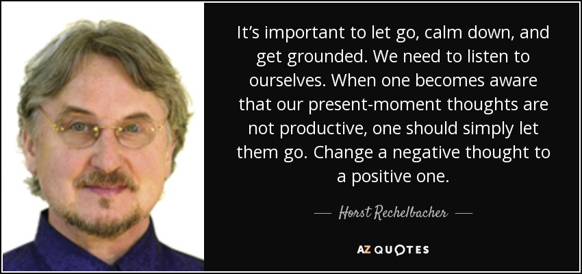 It’s important to let go, calm down, and get grounded. We need to listen to ourselves. When one becomes aware that our present-moment thoughts are not productive, one should simply let them go. Change a negative thought to a positive one.