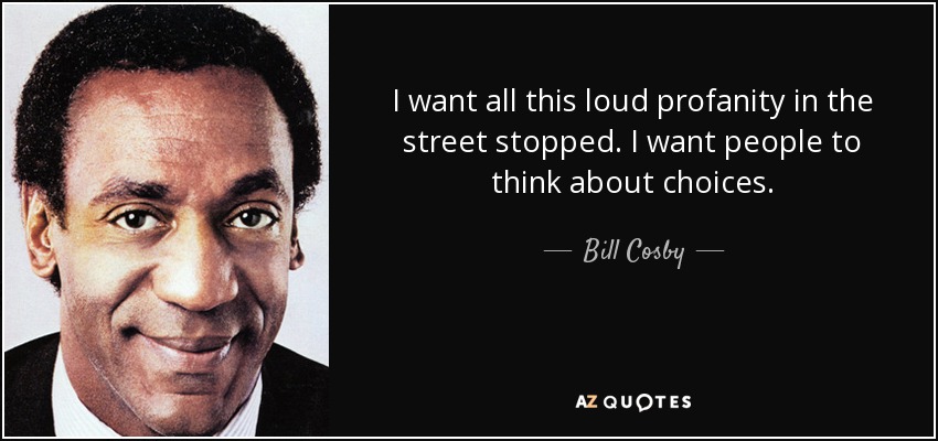 I want all this loud profanity in the street stopped. I want people to think about choices.