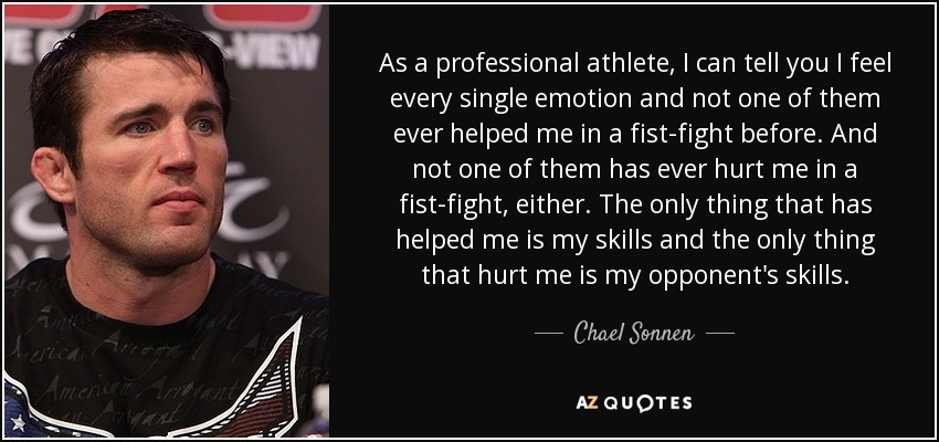As a professional athlete, I can tell you I feel every single emotion and not one of them ever helped me in a fist-fight before. And not one of them has ever hurt me in a fist-fight, either. The only thing that has helped me is my skills and the only thing that hurt me is my opponent's skills.