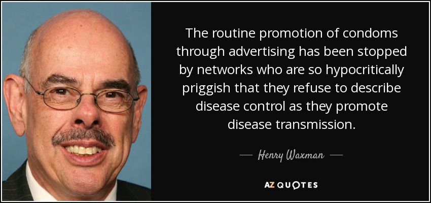 The routine promotion of condoms through advertising has been stopped by networks who are so hypocritically priggish that they refuse to describe disease control as they promote disease transmission.