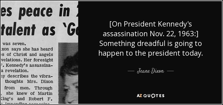 [On President Kennedy's assassination Nov. 22, 1963:] Something dreadful is going to happen to the president today.