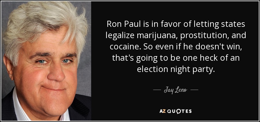 Ron Paul is in favor of letting states legalize marijuana, prostitution, and cocaine. So even if he doesn't win, that's going to be one heck of an election night party.