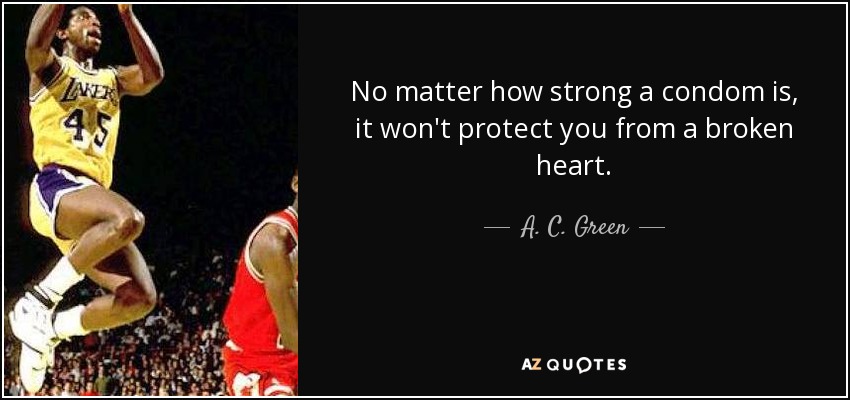 No matter how strong a condom is, it won't protect you from a broken heart.