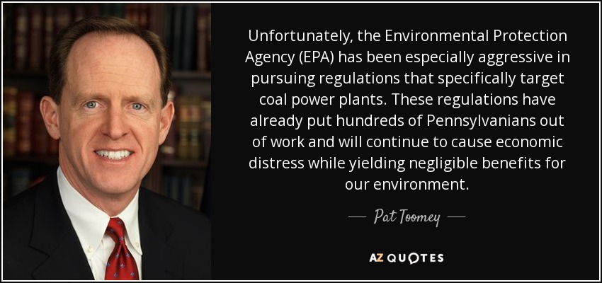 Unfortunately, the Environmental Protection Agency (EPA) has been especially aggressive in pursuing regulations that specifically target coal power plants. These regulations have already put hundreds of Pennsylvanians out of work and will continue to cause economic distress while yielding negligible benefits for our environment.
