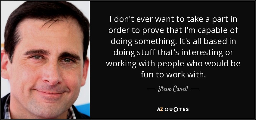 I don't ever want to take a part in order to prove that I'm capable of doing something. It's all based in doing stuff that's interesting or working with people who would be fun to work with.