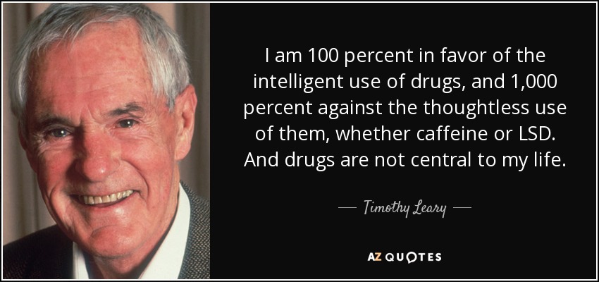 I am 100 percent in favor of the intelligent use of drugs, and 1,000 percent against the thoughtless use of them, whether caffeine or LSD. And drugs are not central to my life.