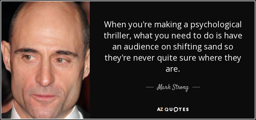 When you're making a psychological thriller, what you need to do is have an audience on shifting sand so they're never quite sure where they are.