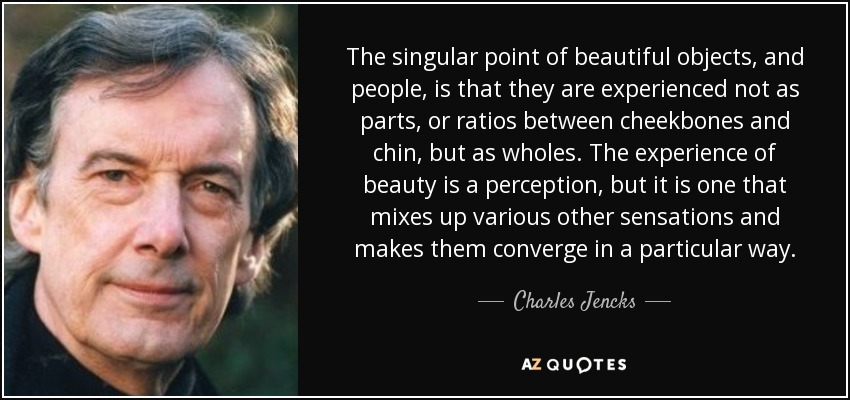 The singular point of beautiful objects, and people, is that they are experienced not as parts, or ratios between cheekbones and chin, but as wholes. The experience of beauty is a perception, but it is one that mixes up various other sensations and makes them converge in a particular way.