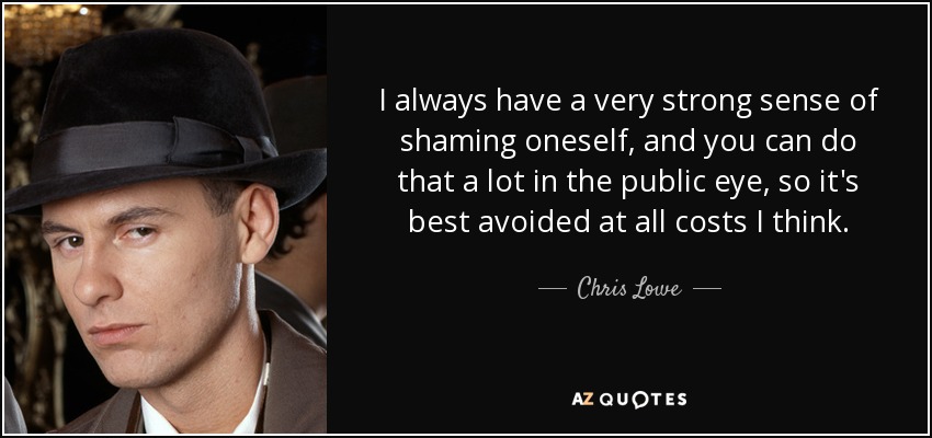 I always have a very strong sense of shaming oneself, and you can do that a lot in the public eye, so it's best avoided at all costs I think.