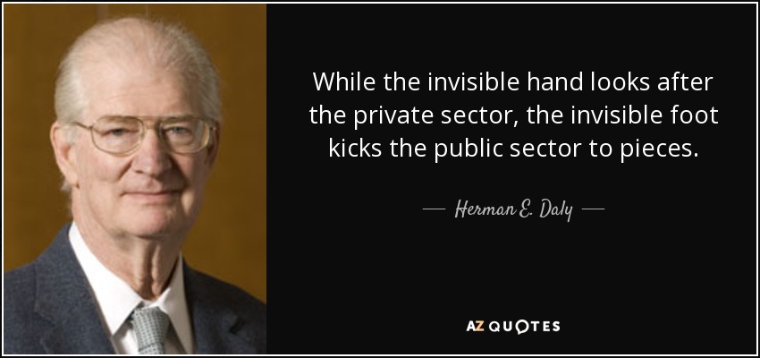 While the invisible hand looks after the private sector, the invisible foot kicks the public sector to pieces.