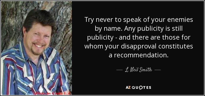 Try never to speak of your enemies by name. Any publicity is still publicity - and there are those for whom your disapproval constitutes a recommendation.