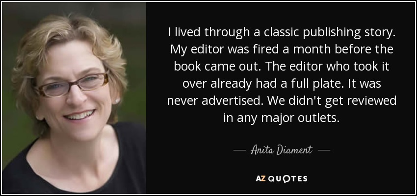 I lived through a classic publishing story. My editor was fired a month before the book came out. The editor who took it over already had a full plate. It was never advertised. We didn't get reviewed in any major outlets.