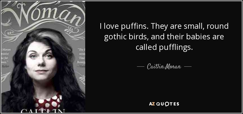 I love puffins. They are small, round gothic birds, and their babies are called pufflings.