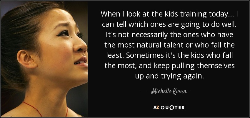 When I look at the kids training today... I can tell which ones are going to do well. It's not necessarily the ones who have the most natural talent or who fall the least. Sometimes it's the kids who fall the most, and keep pulling themselves up and trying again.