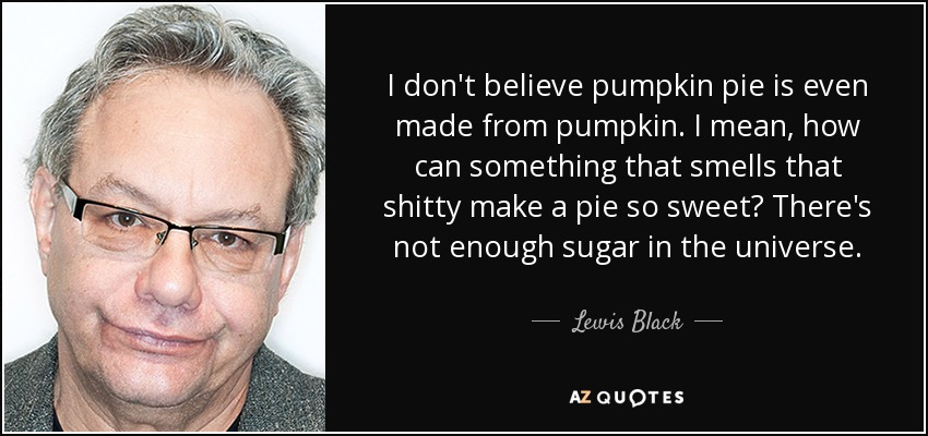 I don't believe pumpkin pie is even made from pumpkin. I mean, how can something that smells that shitty make a pie so sweet? There's not enough sugar in the universe.