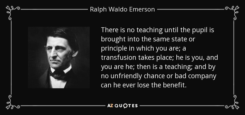 There is no teaching until the pupil is brought into the same state or principle in which you are; a transfusion takes place; he is you, and you are he; then is a teaching; and by no unfriendly chance or bad company can he ever lose the benefit.