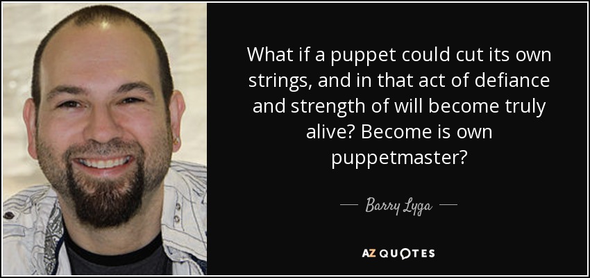What if a puppet could cut its own strings, and in that act of defiance and strength of will become truly alive? Become is own puppetmaster?