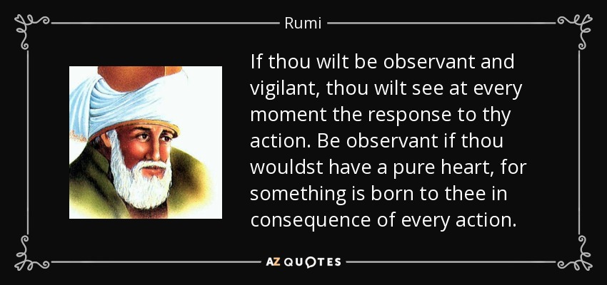 If thou wilt be observant and vigilant, thou wilt see at every moment the response to thy action. Be observant if thou wouldst have a pure heart, for something is born to thee in consequence of every action.