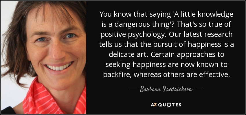 You know that saying 'A little knowledge is a dangerous thing'? That's so true of positive psychology. Our latest research tells us that the pursuit of happiness is a delicate art. Certain approaches to seeking happiness are now known to backfire, whereas others are effective.