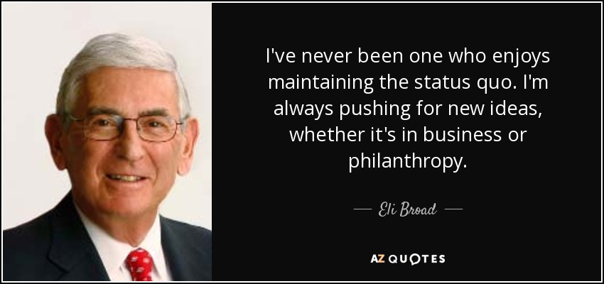 I've never been one who enjoys maintaining the status quo. I'm always pushing for new ideas, whether it's in business or philanthropy.