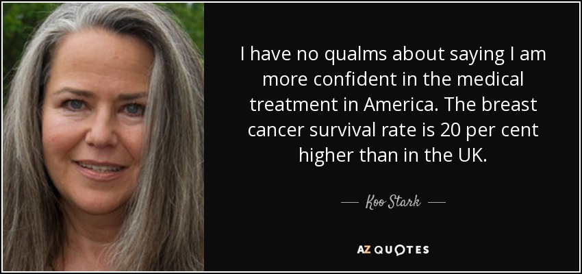 I have no qualms about saying I am more confident in the medical treatment in America. The breast cancer survival rate is 20 per cent higher than in the UK.
