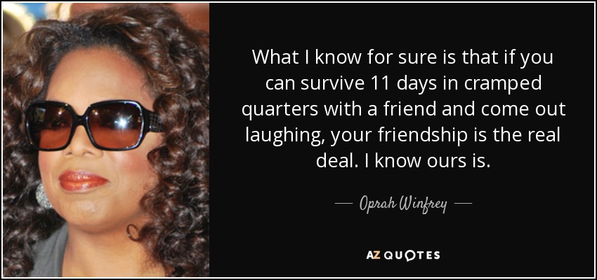 What I know for sure is that if you can survive 11 days in cramped quarters with a friend and come out laughing, your friendship is the real deal. I know ours is.