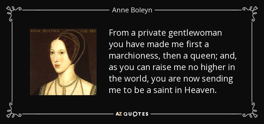 From a private gentlewoman you have made me first a marchioness, then a queen; and, as you can raise me no higher in the world, you are now sending me to be a saint in Heaven.