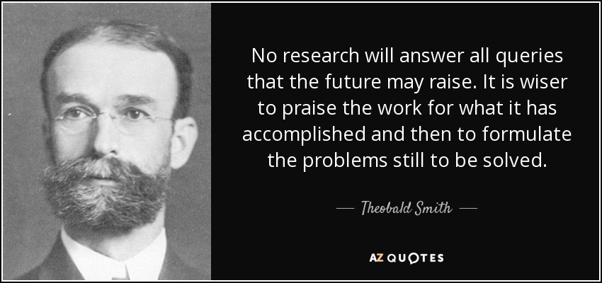 No research will answer all queries that the future may raise. It is wiser to praise the work for what it has accomplished and then to formulate the problems still to be solved.