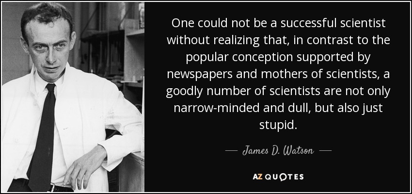 One could not be a successful scientist without realizing that, in contrast to the popular conception supported by newspapers and mothers of scientists, a goodly number of scientists are not only narrow-minded and dull, but also just stupid.