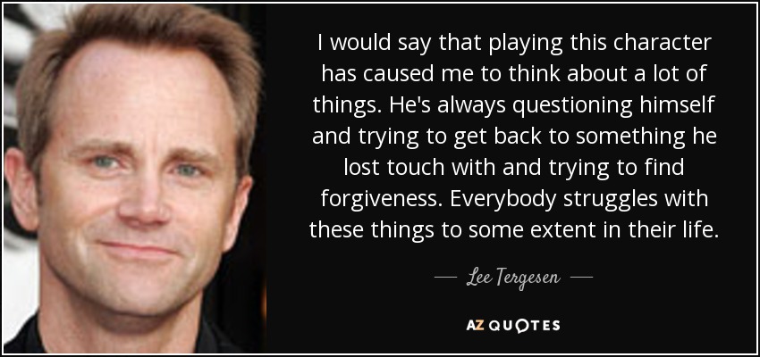 I would say that playing this character has caused me to think about a lot of things. He's always questioning himself and trying to get back to something he lost touch with and trying to find forgiveness. Everybody struggles with these things to some extent in their life.
