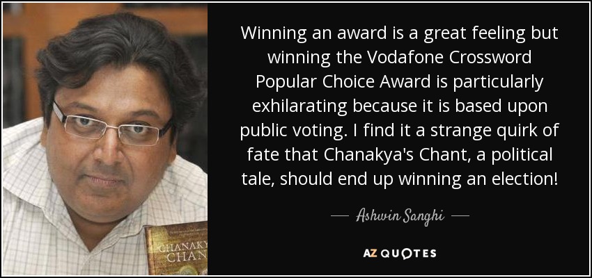 Winning an award is a great feeling but winning the Vodafone Crossword Popular Choice Award is particularly exhilarating because it is based upon public voting. I find it a strange quirk of fate that Chanakya's Chant, a political tale, should end up winning an election!