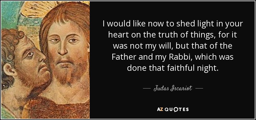 I would like now to shed light in your heart on the truth of things, for it was not my will, but that of the Father and my Rabbi, which was done that faithful night.