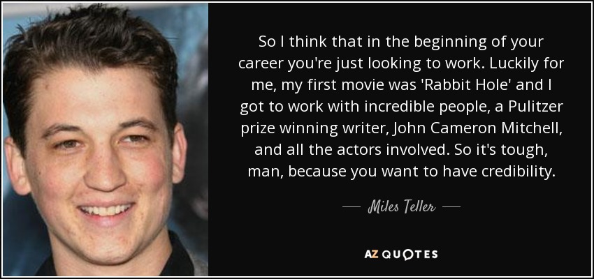 So I think that in the beginning of your career you're just looking to work. Luckily for me, my first movie was 'Rabbit Hole' and I got to work with incredible people, a Pulitzer prize winning writer, John Cameron Mitchell, and all the actors involved. So it's tough, man, because you want to have credibility.