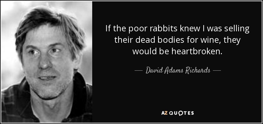 If the poor rabbits knew I was selling their dead bodies for wine, they would be heartbroken.
