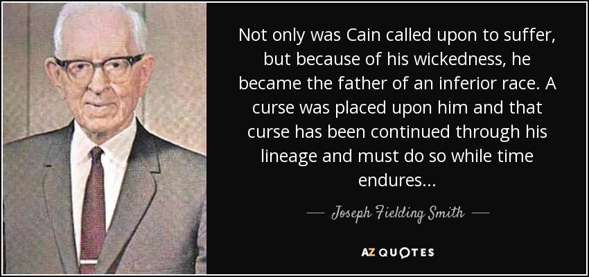Not only was Cain called upon to suffer, but because of his wickedness, he became the father of an inferior race. A curse was placed upon him and that curse has been continued through his lineage and must do so while time endures...